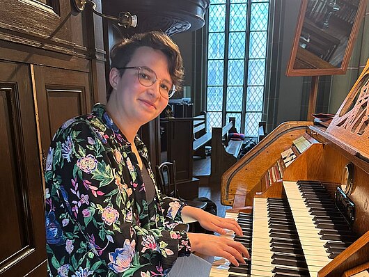 Am 20. Dezember 2025 übernahm Charlotte Vitek die Elternzeitvertretung für Anna Croissant. Sie ist 25 Jahre alt, kommt aus der Kurpfalz (bei Ladenburg) und hat die letzten Jahre in Frankfurt gelebt. Dort hat sie auch Kirchenmusik studiert, Orgelliteratur und -improvisation bei Prof. Stefan Viegelahn, Chorleitung bei Prof. Florian Lohmann. Parallel war sie nebenamtliche Organistin und Chorleiterin an der evangelischen Dornbuschgemeinde in Frankfurt. 2022 durfte sie die Arbeit im Stifts-und Bezirkskantorat Landau schon im Rahmen ihres (im Studium vorgesehenen) Gemeindepraktikums kennenlernen und war sehr begeistert von der Vielfalt der Gruppen und Aufgaben.